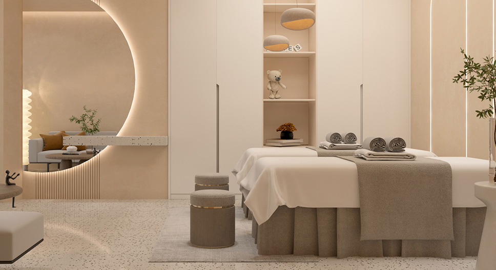 洽谈间以舒适为主,偏暖调的设计,柔而优雅,让交流也变得愉快起来。治疗间则偏冷调,搭配简洁利索的线条感,更具备专业感。同时辅以木质,注入温和气息,呈现温暖且具有治愈力的医疗空间。