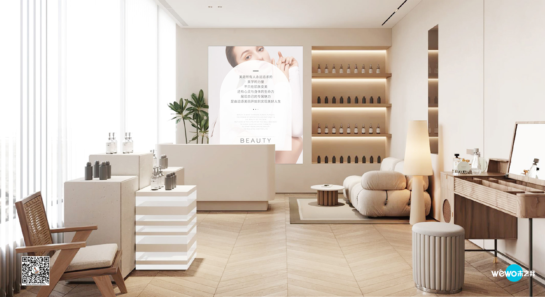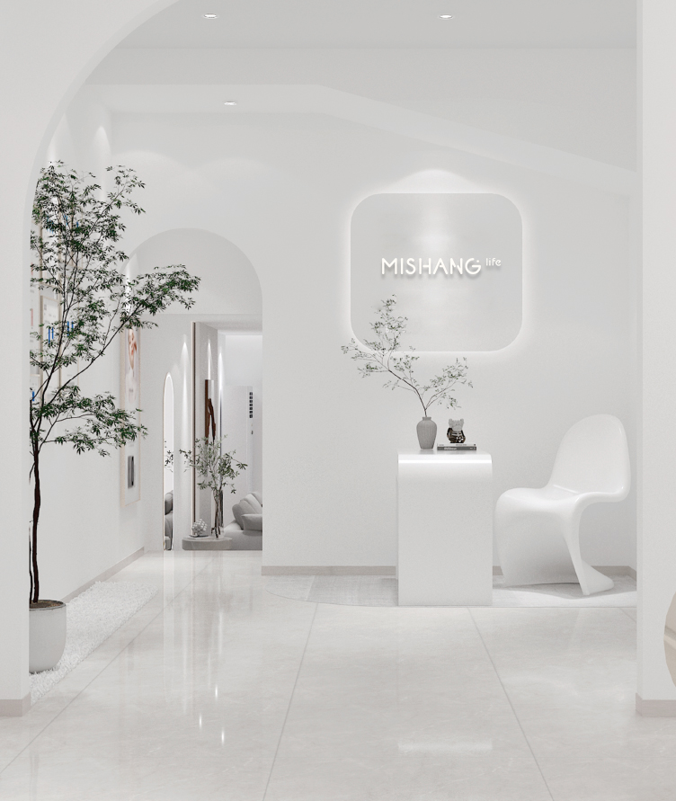 店铺设计希望传达专业、安全、时尚的感觉,曲线与光感的渐晕结合,仿佛预知着新生的蜕变。整体空间采用柔和的中性色调,来突出各类材质的特性,感受丰富的空间层次。干净的线条和温暖的机理,无不展现着简约美学。