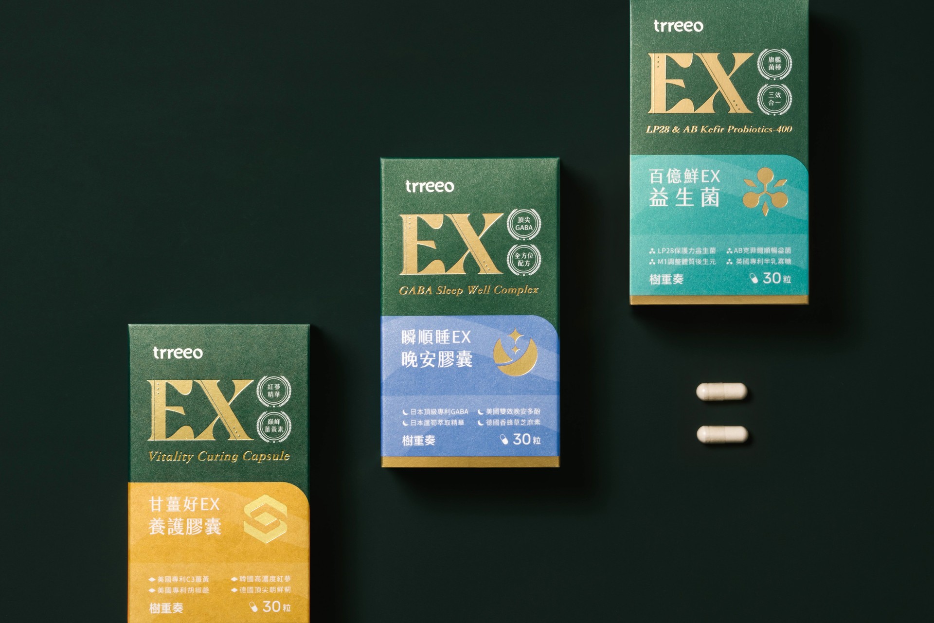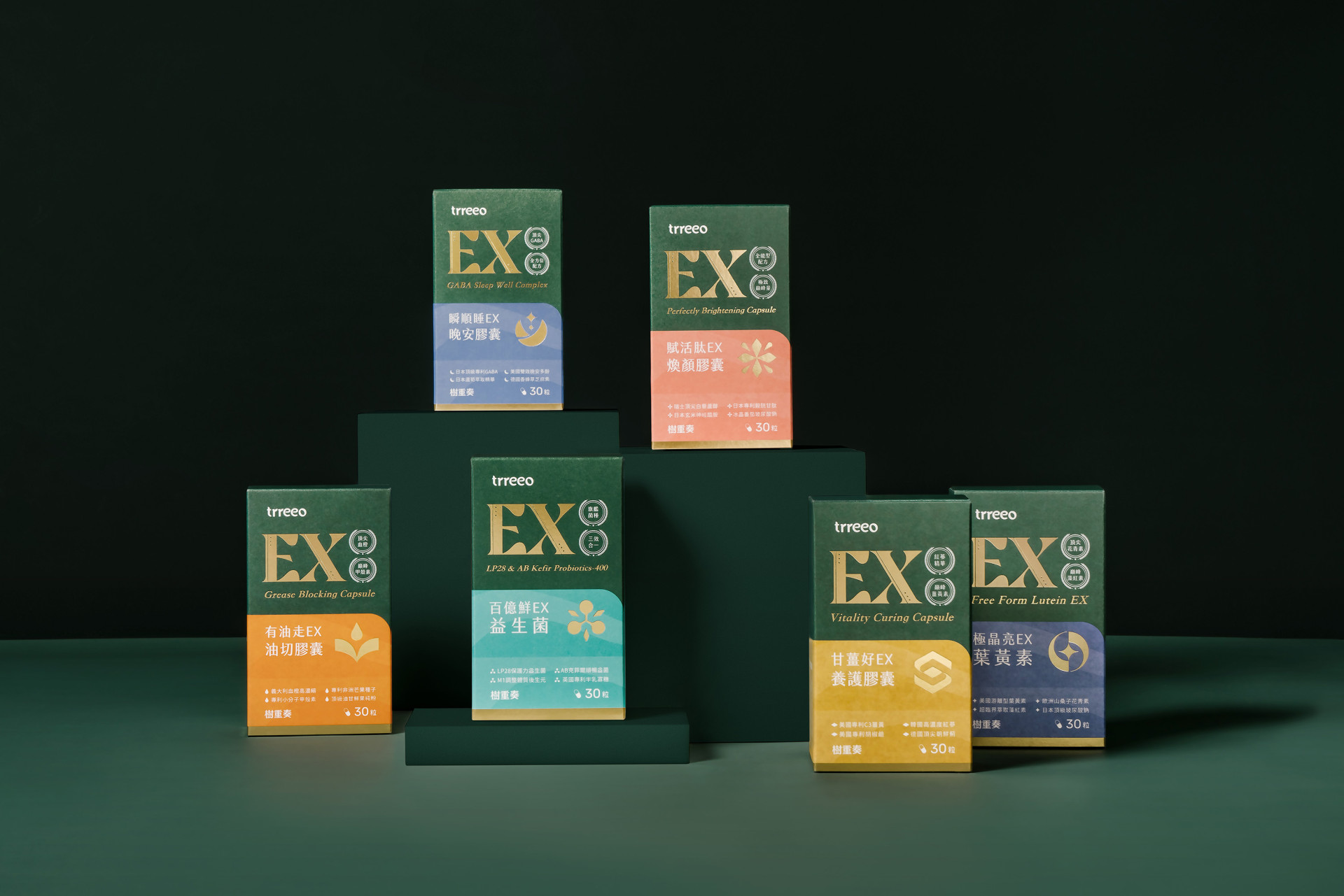 创意设计:手工皂礼盒的设计上,我们运用了森然的识别形象,在O上加入了油甘果的插图;包装材质采用FSC环保认证纸,减少对环境的影响。油甘系列手工皂减少了多余的包装,让内容物清晰可见,增加了产品的信任度。最新推出的EX 系列,外盒主色延续品牌绿来强化品牌氛围,主视觉以系列名称 EX 并运用烫金与特殊字体设计带出顶级的质感意象。系列的关键成分也运用 icon 形式呈现,来强化沟通与呈现价值感;并针对不同诉求的品项搭配不规则底纹方便消费者查找商品,盒身侧面则运用设计边框来做统整,让各家专利商标呈现上仍维持一制性,不凌乱;也更有效传递产品优势。