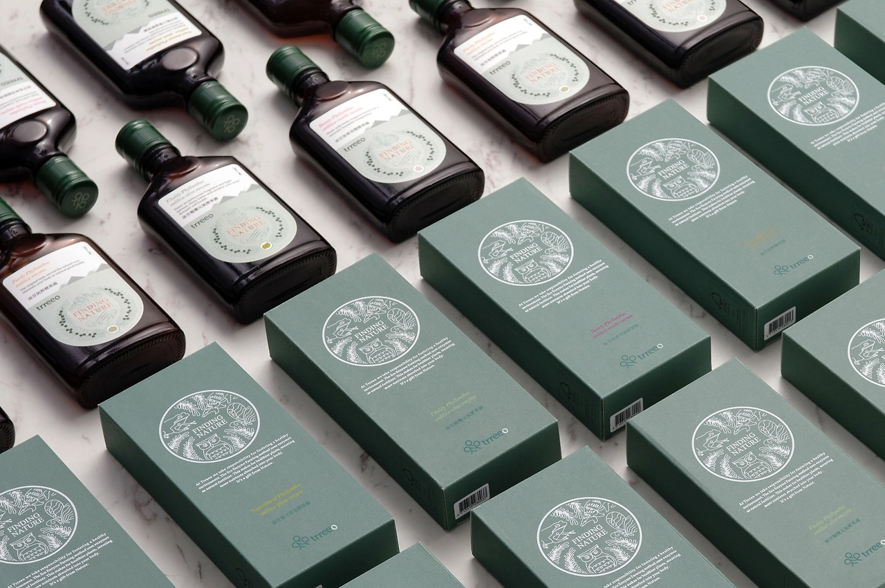 品牌定位:树重奏trreeo是一个专注于有机植感保健的品牌,其核心理念源于自然农法的三层立体种作方式。品牌名称中的trio寓意三重奏概念,同时three O谐音代表着Original原始、Organic有机、Orchard果园三大核心价值。