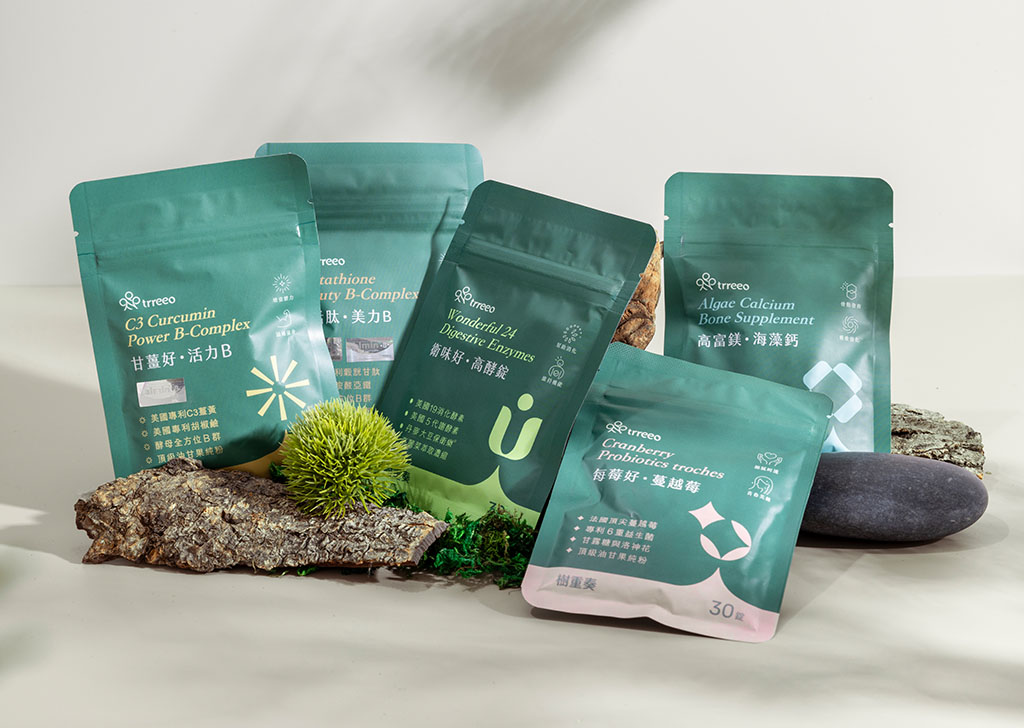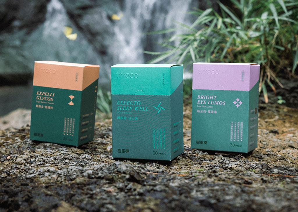 以油甘果为推广的trreeo树重奏,透过酵道自然农法,三层立体种作,识别上利用乐谱线结合树型,让果实在树上谱出美丽的三O乐章;三个O也代表着Original、Organic、Orchard。 [发现自然余味回甘系列] 将探索山林的动物转化为主视觉元素,试着将真诚且自然的氛围渲染给食用者,罐装以扁瓶装,增加携带的便利性,减少置物所需的空间,提升品牌的连结度,包装上特别采用FSC环保认证纸张,结构上采一体成型的无胶包装,为消费者健康把关Design by victor team。