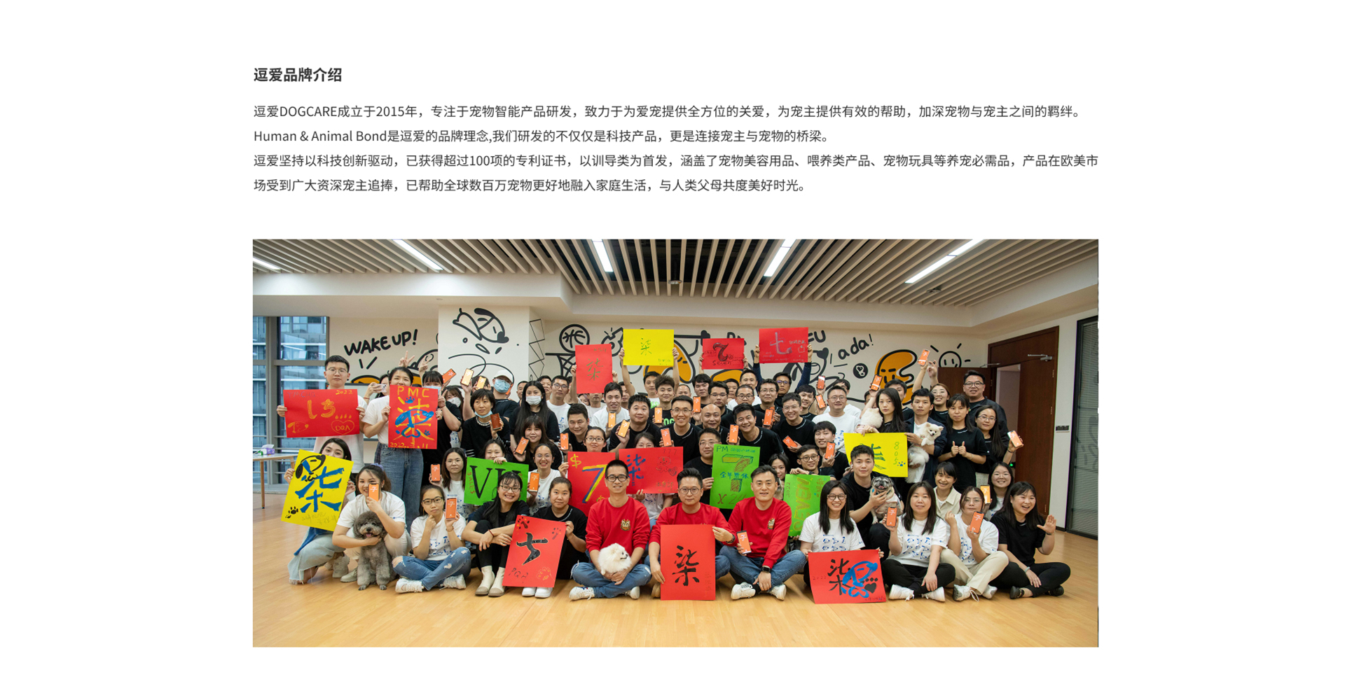 品牌背景:逗爱dogcare 创新科技成立2014年,是一家专注于宠物智能产品自主研发的互联网公司,“构建人与宠物和谐关系”是逗爱dogcare的产品概念。
