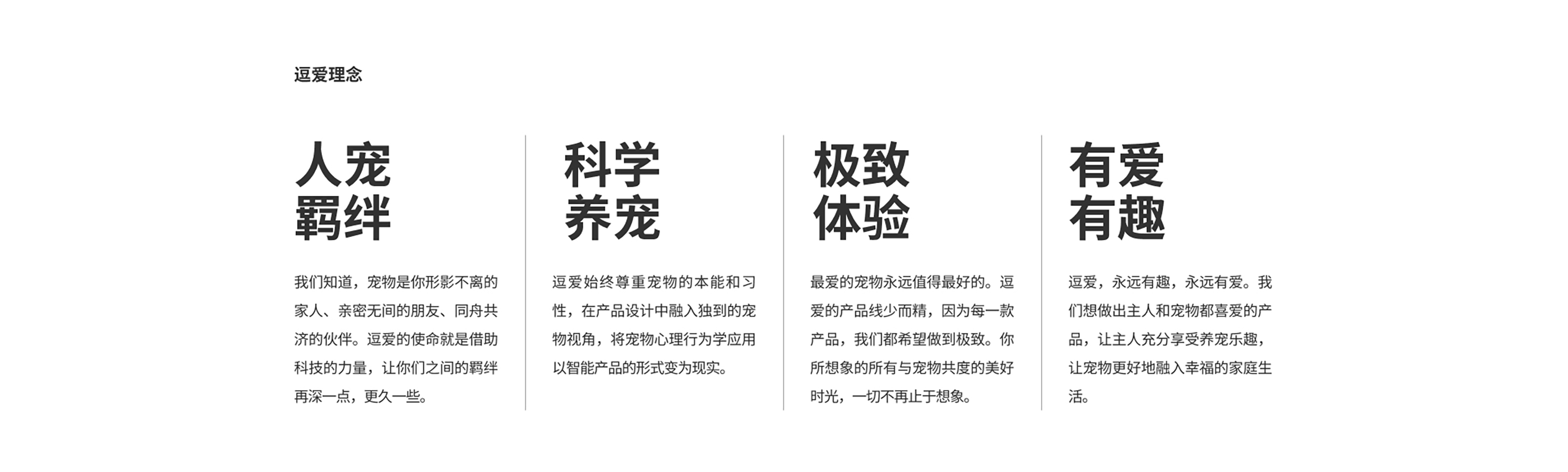 逗爱首创将“科学养宠,将宠物心理行为学应用”用智能产品进行实现,让宠物变得乖巧,减少主人养宠物的负担,让主人充分享受养宠物的乐趣,同时让宠物顺利融入家庭和社会,构建人和宠物之间和谐关系。
