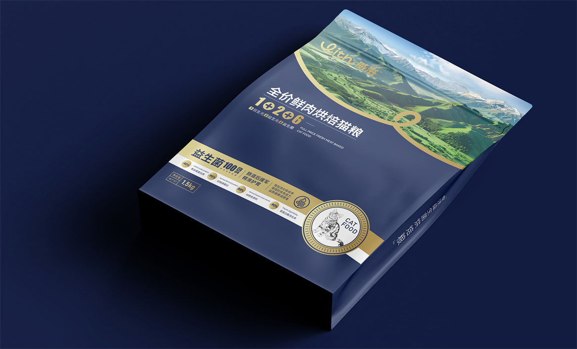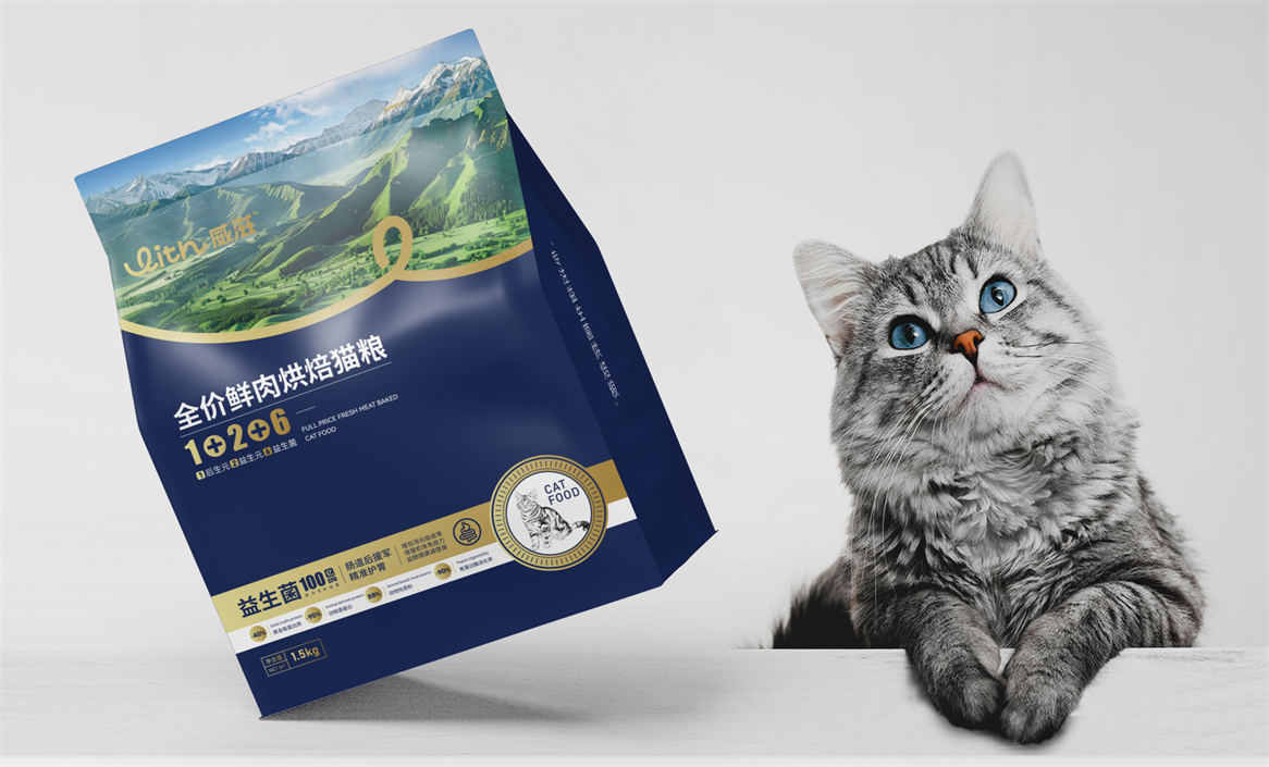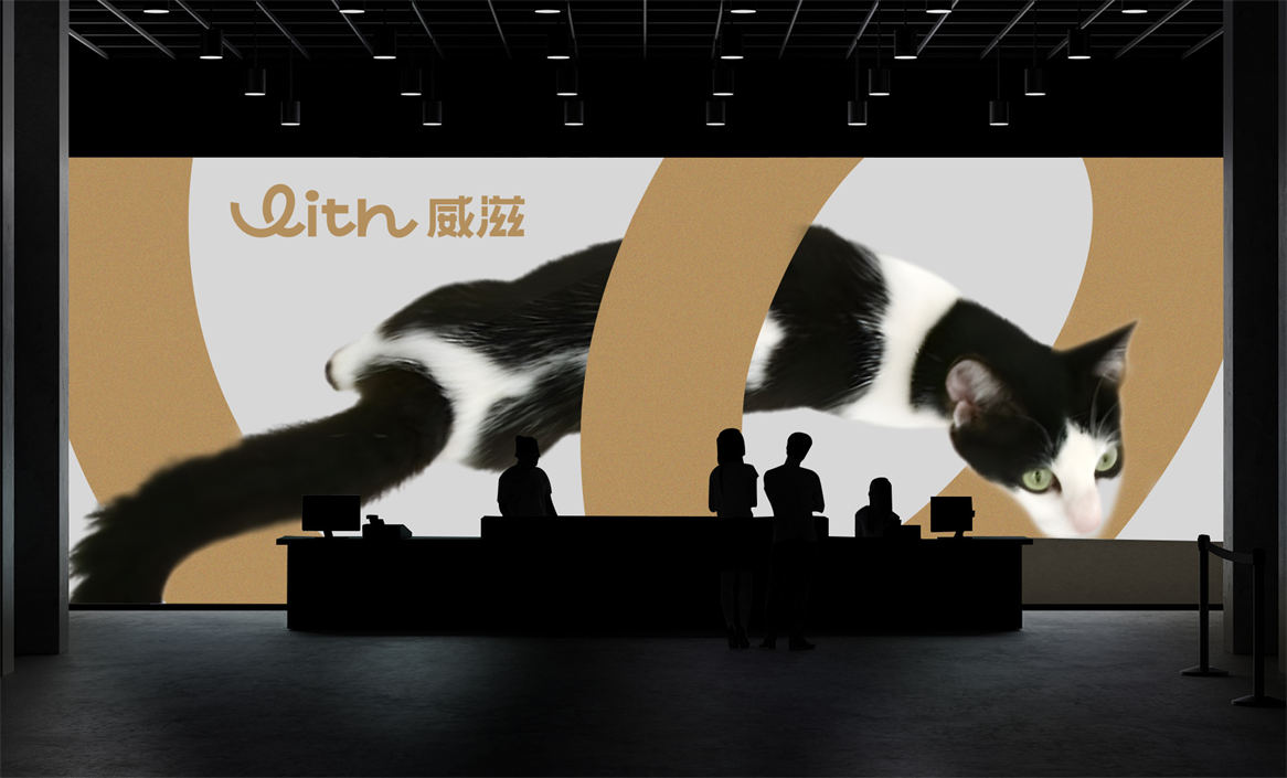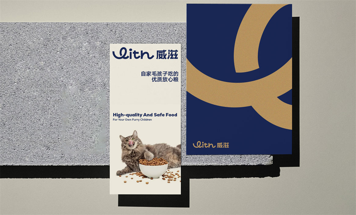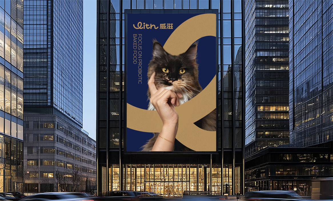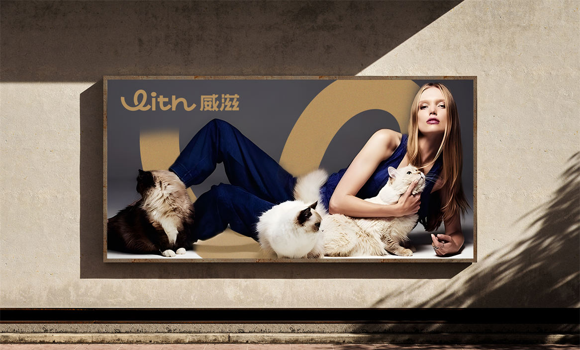 对于威滋品牌,我们确定好品牌策略后,就是解决品牌视觉识别问题,即品牌如何符号化,既能容易识别记忆,又能传递品牌核心理念。威滋品牌定位是功能型全价鲜肉烘焙猫粮,主打一个滋养陪伴,所以勤略团队就围绕这个点打造品牌视觉符号,利用品牌英文WITH巧妙的设计了一个代表链接和陪伴的符号,即是代表品牌的首字母,又是品牌核心理念的传达。整体品牌logo中英文设计,简约时尚大方,突显中高端和国际化气质。