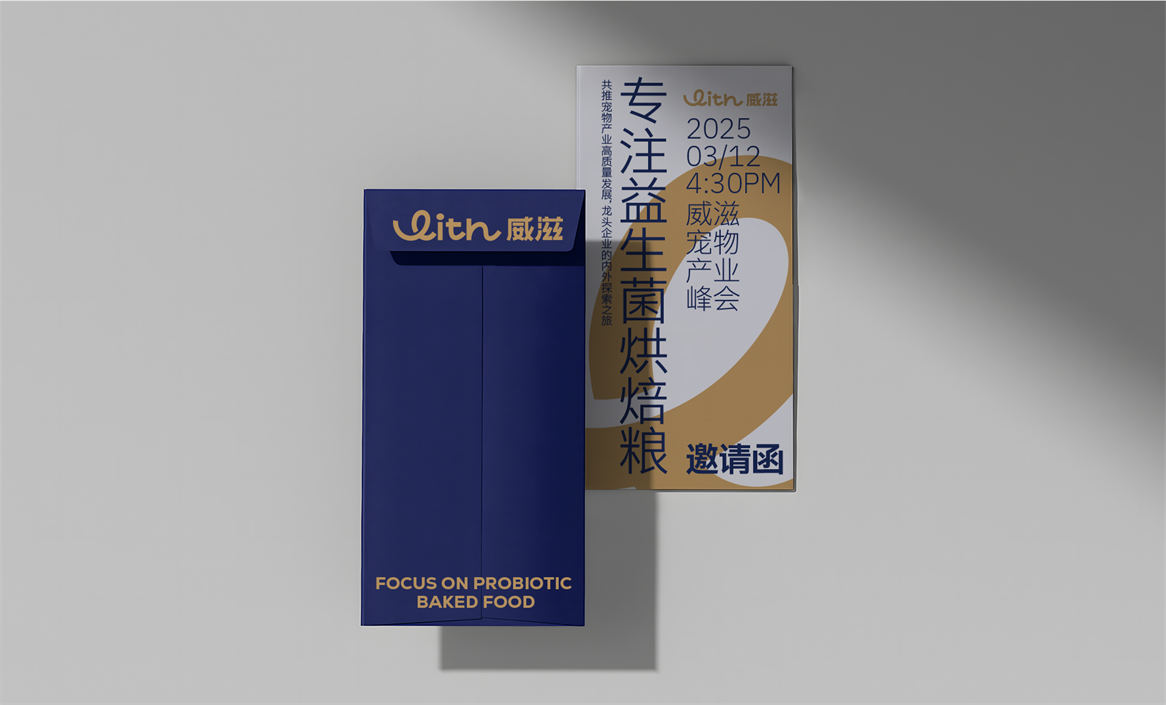威滋(WITH)品牌释义,“威”有威风、威武、健硕有力的意思,“滋”为滋养、滋育、滋补之意;“WITH” 翻译中文为“和”,寓意“二者兼具”,延申理解为“人和宠 ”的和谐相处,相互陪伴,这对于现代人类早已是一种心灵滋养;这样看来,人对宠的悉心养护最终还是返哺到人之本身,如同日本经典影视“忠犬八公”所表达的忠诚与守护,这也是品牌“威滋WITH”想要传达的力量和信念。创意介绍:品牌符号化