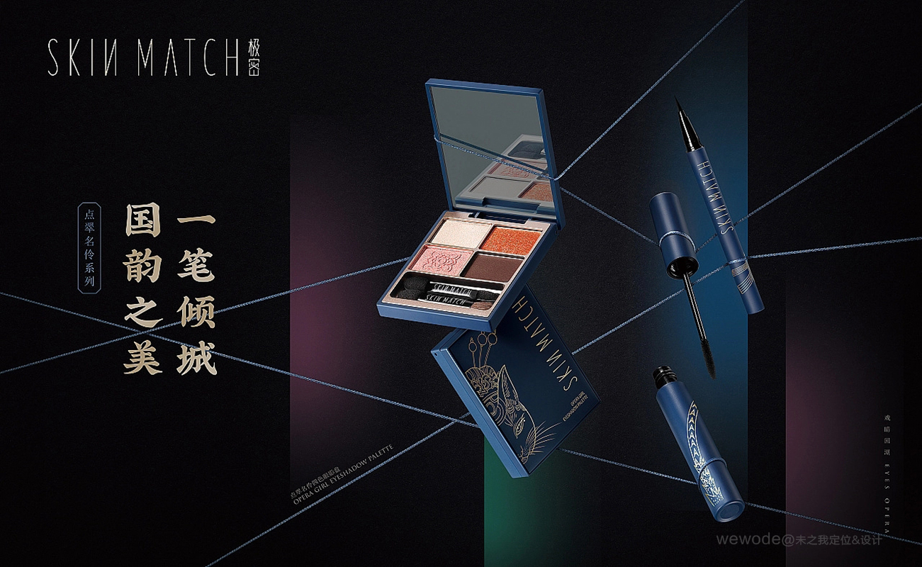 极密是广东雅丽洁精细化工有限公司旗下彩妆品牌,2019年,广州未之我公司受邀为SKINMATCH极密策划、设计并落地SKINMATCH极密-戏睛回潮系列、项目包括:原创插画手绘、包装视觉策划设计、海报策划设计、品牌show展厅策划设计
