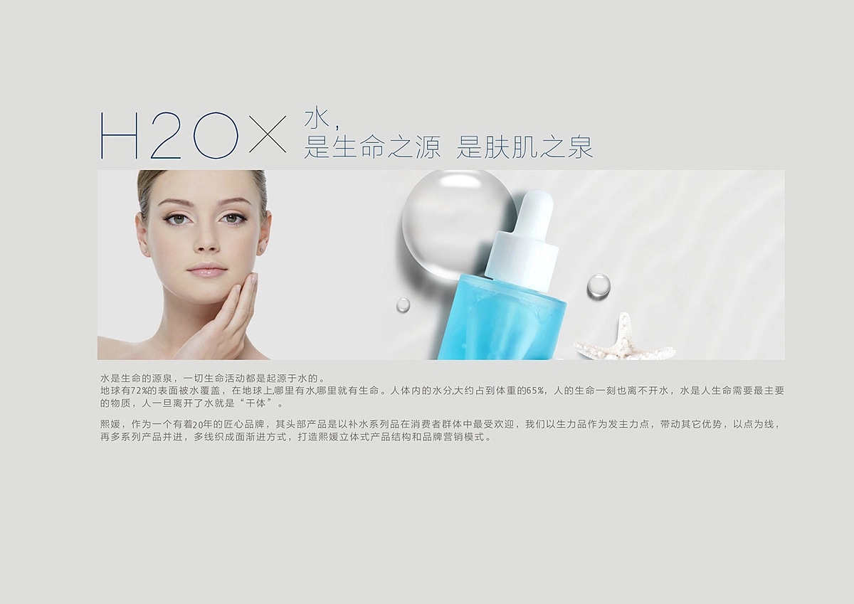 熙媛,作为一个有着20年的匠心品牌,其头部产品是以补水系列品在消费者群体中最受欢迎,我们以生力品作为发主力点,带动其它优势,以点为线,再多系列产品并进,多线织成面渐进方式,打造熙媛立体式产品结构和品牌营销模式。
