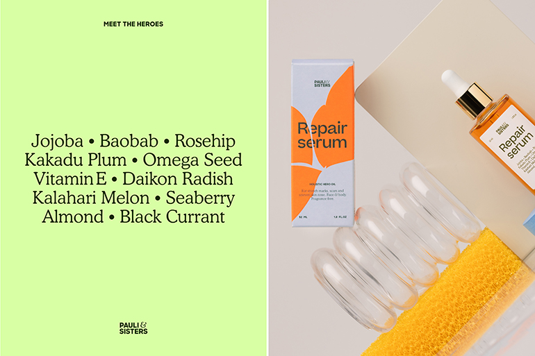 设计理念:Pauli & Sisters 是加利福尼亚的家族企业。他们的第一款产品“修护精华“是一款针对妊娠纹、疤痕和肤色不均的整体英雄油。“它始于每种成分都是英雄成分。我们不会出于营销目的在配方中添加成分。Pauli & Sisters 含有 11 种成分所有 11种成分均经过两年精心配制,为您的肌肤提供应有的爱。