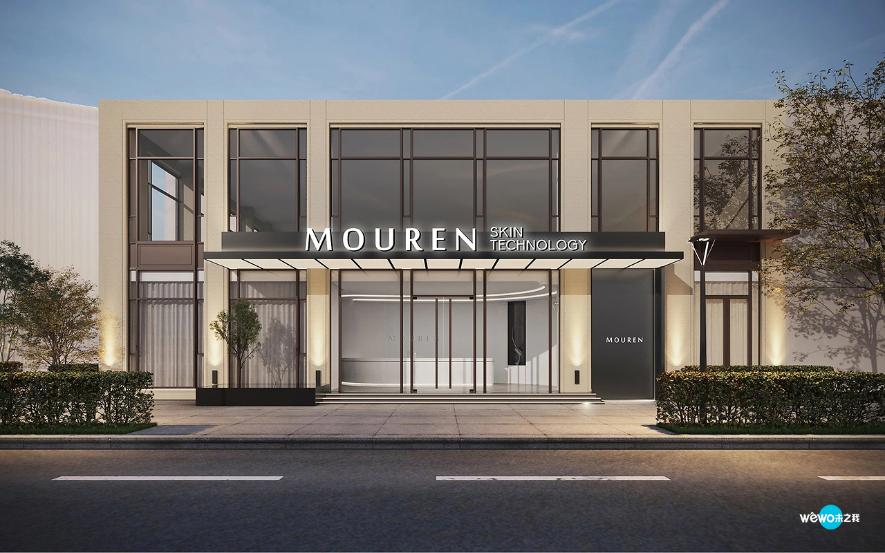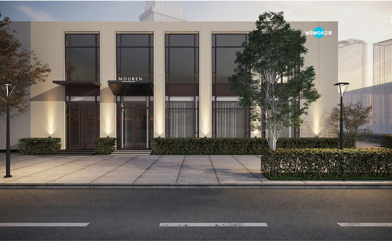 在门头入口处,我们没有做过多的设计,而是采用了大面积的透明玻璃门,既保证了前厅接待区的明亮度,也增加了空间的通透感,配合金属边框,简约精致又有科技感,顾客对茉翎的印象自然形成。