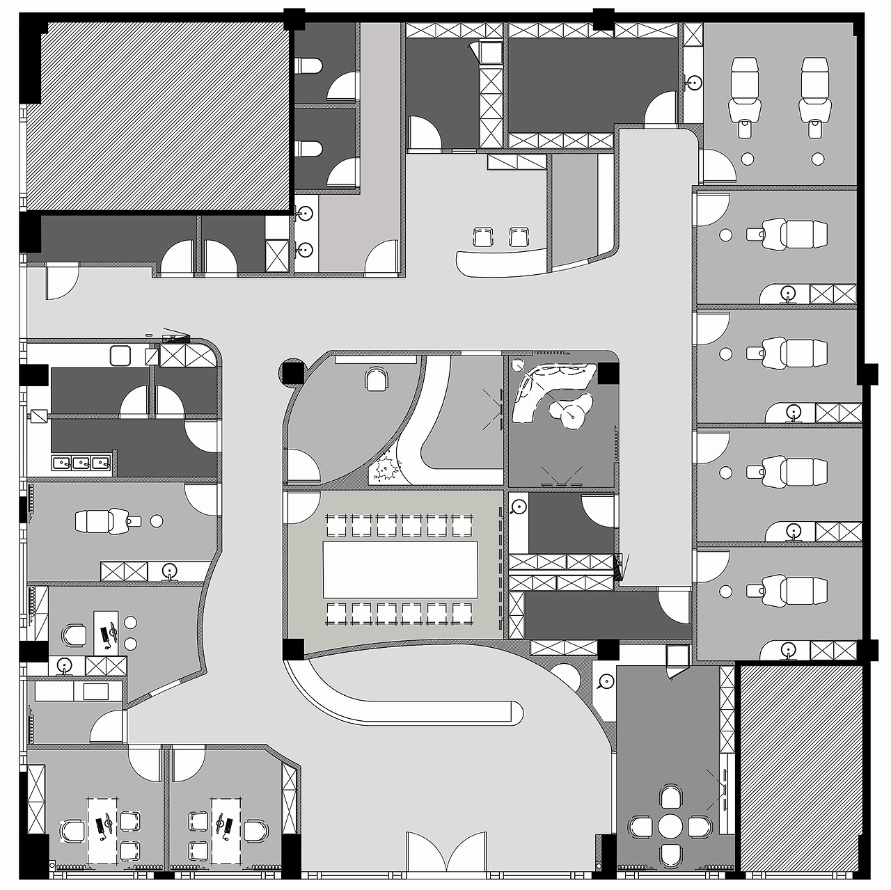 整体空间多使用白色、米白色和灰色等低调而自然的颜色,舒适而又有现代感,同时给人安静放心的感觉,并与小面积的黑色通过点、线、面、体的有机结合,赋予了空间科技感与未来感,给顾客一种专业但不冰冷的感官体验。