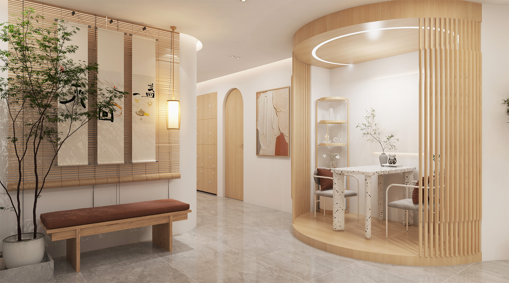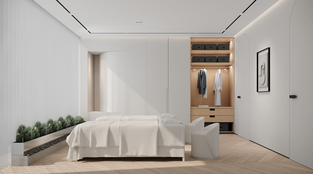洽谈间以舒适为主,偏暖调的设计,柔而优雅,让交流也变得愉快起来。治疗间则偏冷调,搭配简洁利索的线条感,更具备专业感。同时辅以木质,注入温和气息,呈现温暖且具有治愈力的医疗空间。