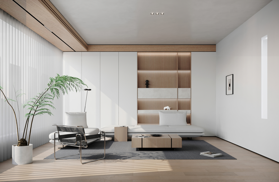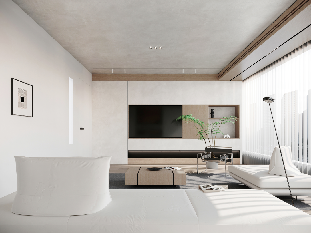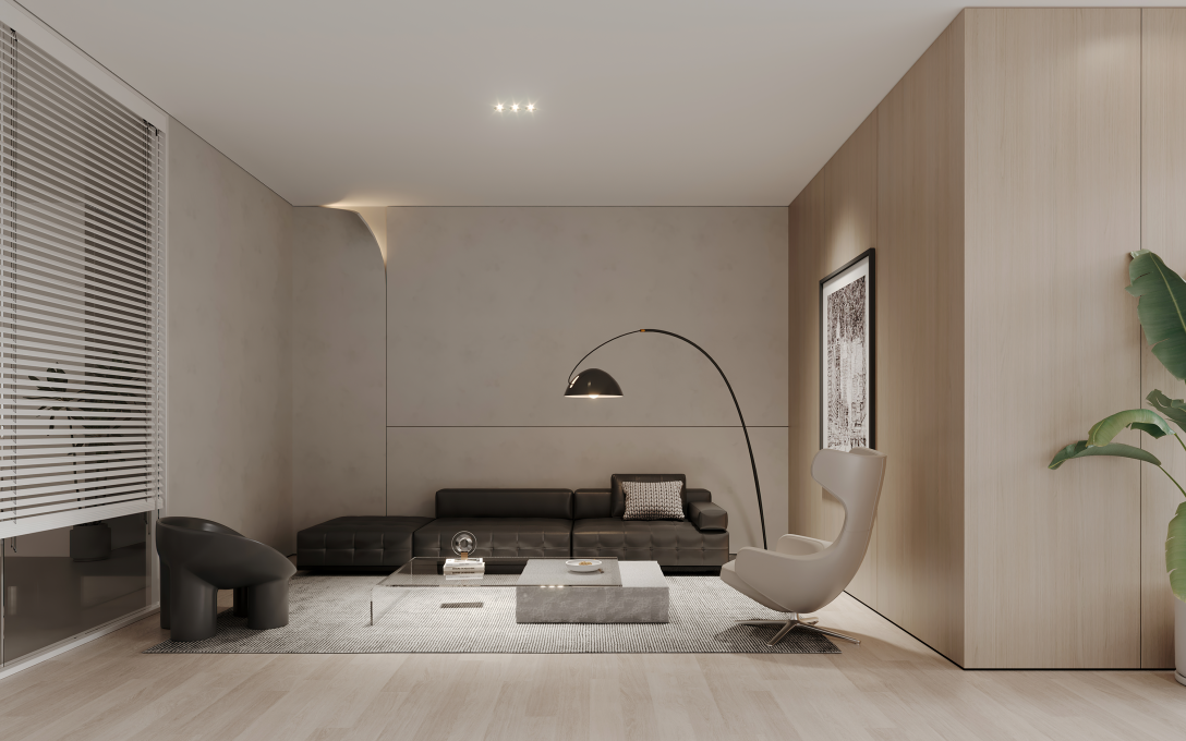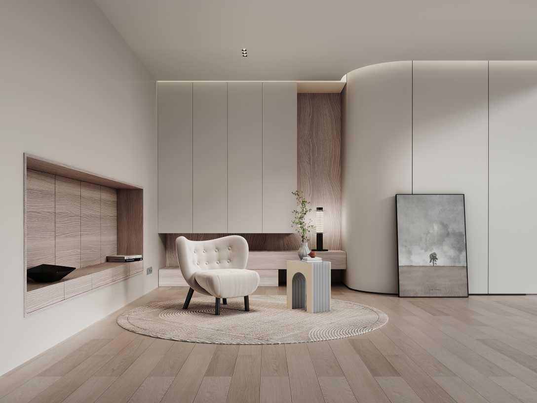 在色彩上,大多以白色和灰色为主,白色是严谨的,在多变的层次结构中呈现出时尚艺术的一面,灰色则是沉静的代表,中和了纯白空间的冷冽感,搭配木纹咖色,构建出亲切自然且舒适的空间。