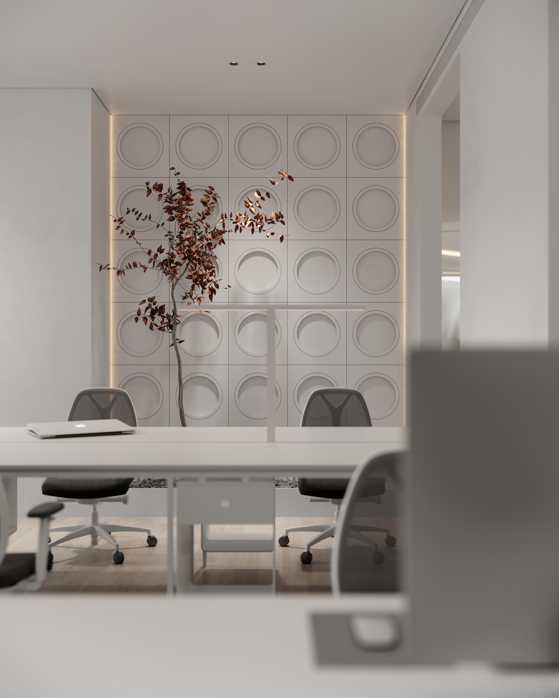 与会议室不同,洽谈室更有一种轻松闲适的氛围感。强调以简为美的理念,用简洁的线条构建空间,每一处细节都是品味与态度的直接体现。居家般的陈设布置,良好的采光,并加以绿植点缀,呈现出通透简约的高品质空间。