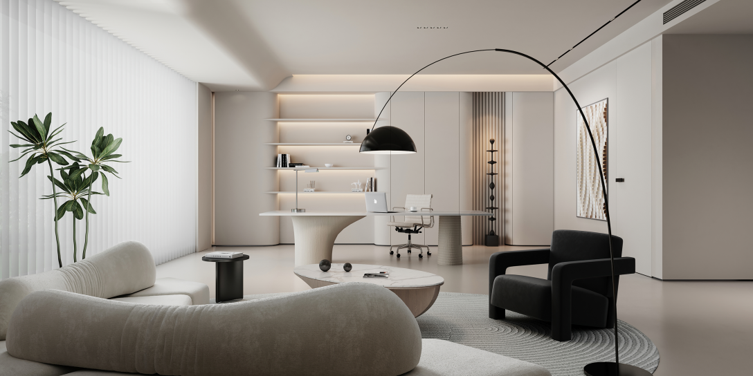 在董事长办公室的设计上,不仅满足空间功能与质感,更多的是营造雅致与轻松并存的工作氛围,让办公也变成一种享受。简单永恒的黑白灰以及奶油色是空间的主旋律,摒弃传统的严肃商务风,选取品质设计款家具作为装点,精美简约的气质扑面而来。