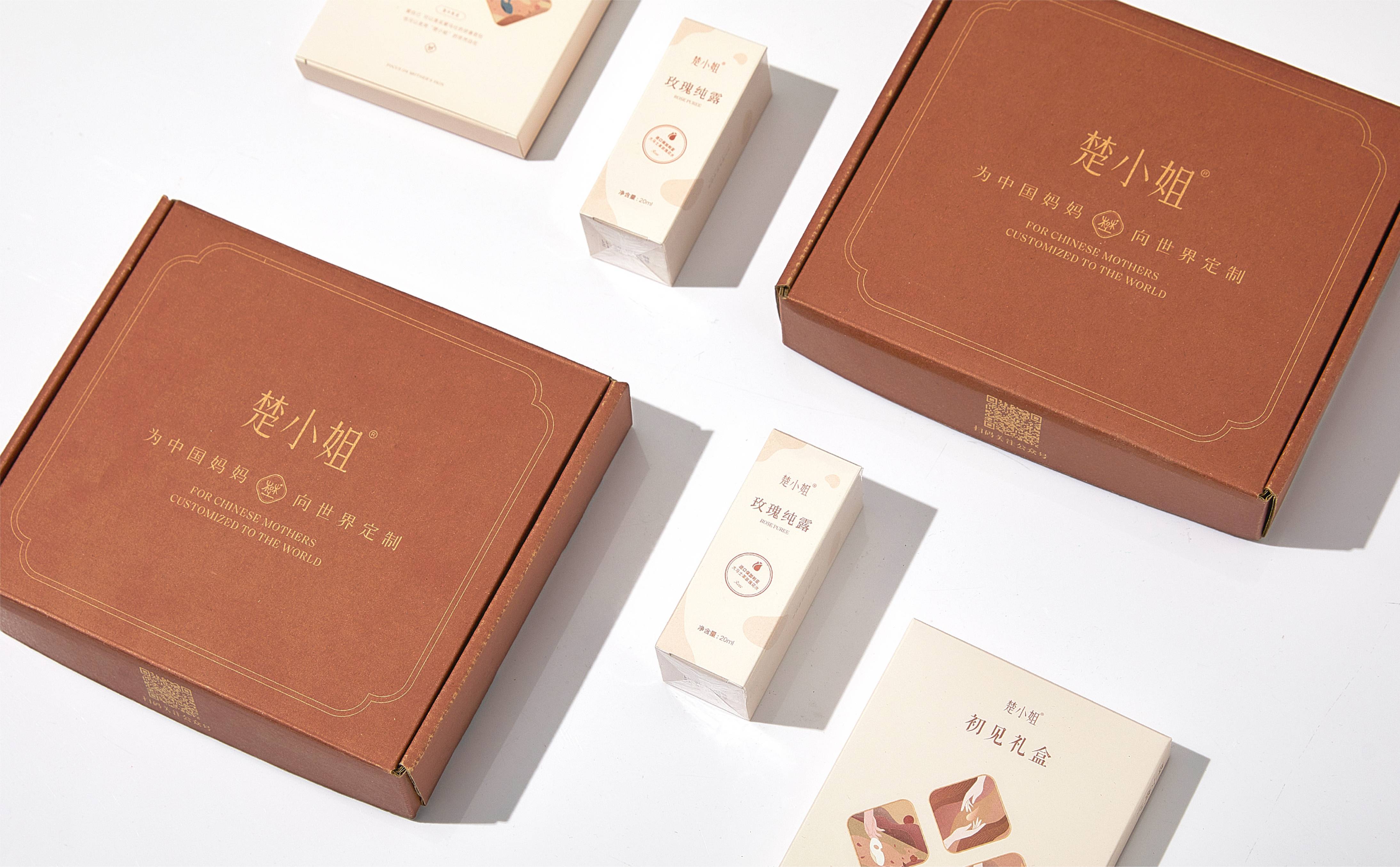 在标志的设计上,我们以中式传统纹样为形,选取隶书“楚”字为标,塑造由内而外的优雅气韵和秀外慧中的含蓄美,精致、典雅、独特,兼具简约的国际感和东方的气质感,这也彰显了楚小姐独特的护肤理念,“为中国妈妈,向世界定制。