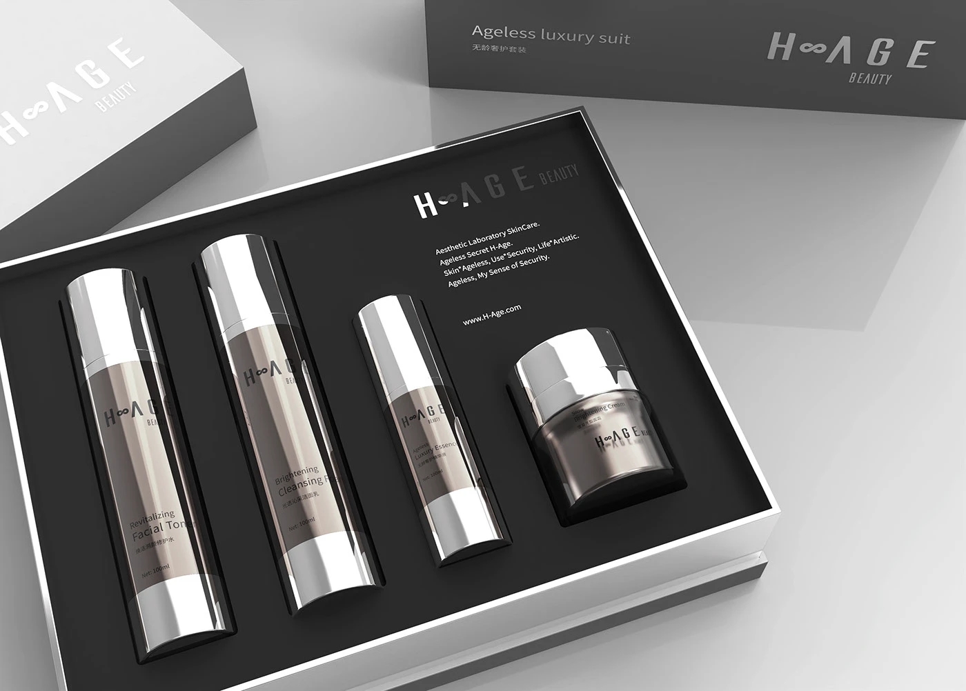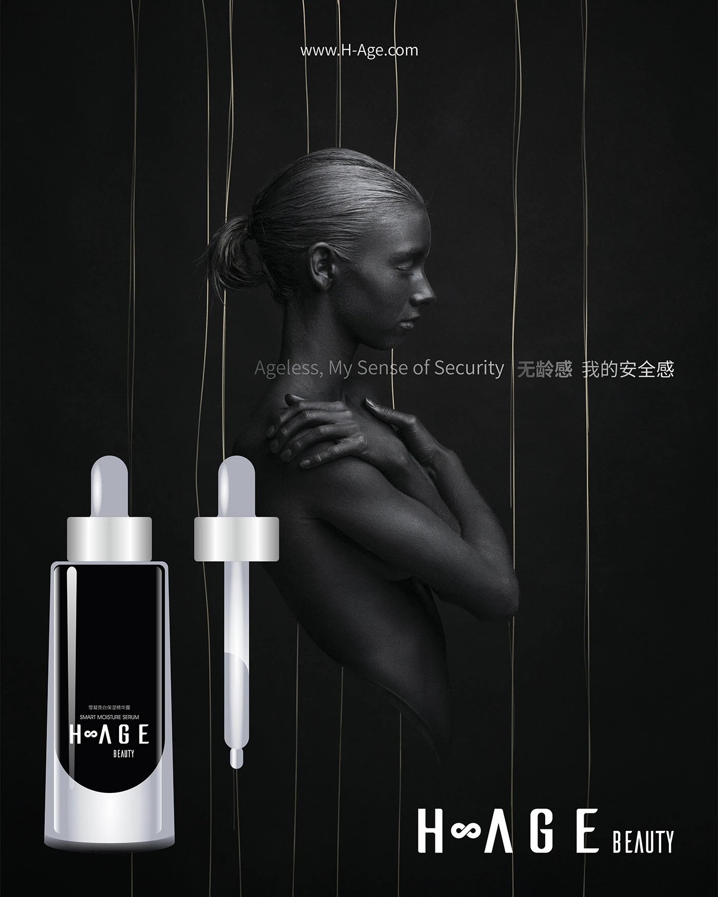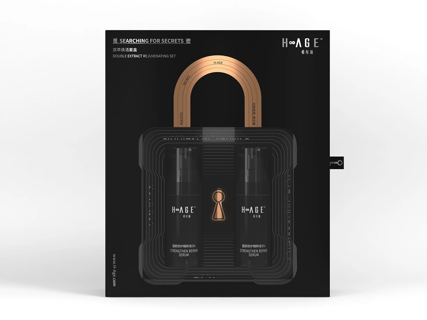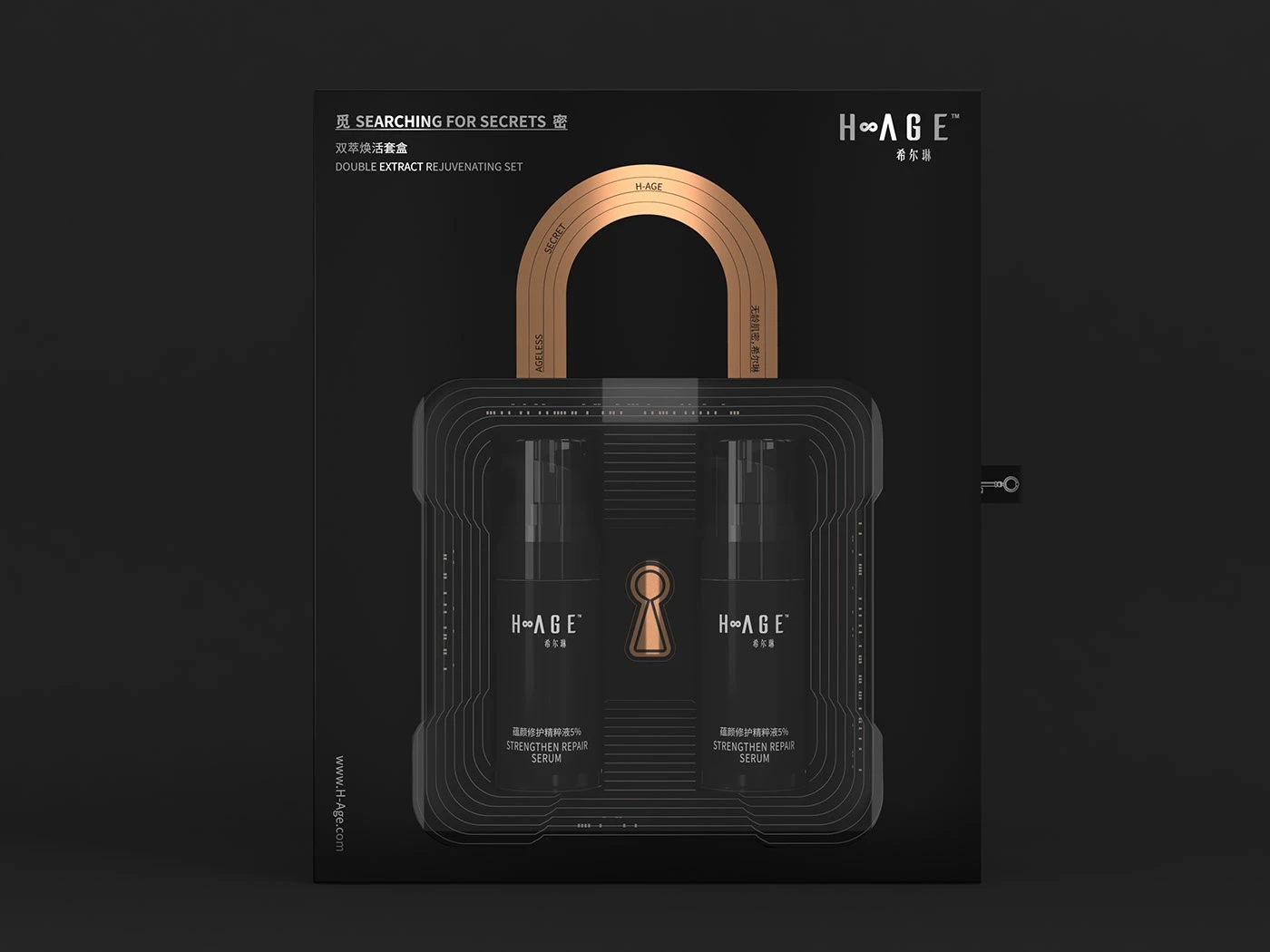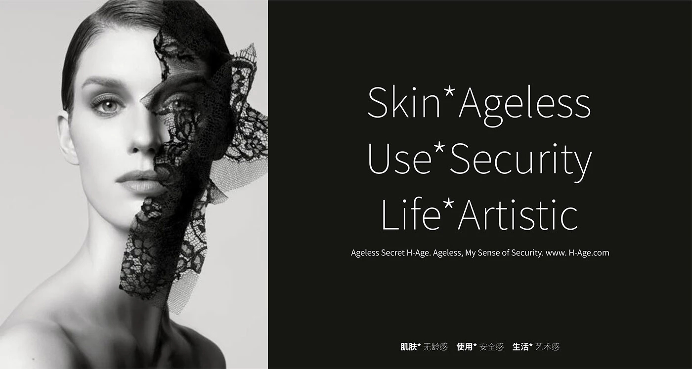 在品牌广告语上,我们制定:无龄肌密,希尔琳(Ageless Secret H-Age);无龄,旨没有年龄的界限,关联品牌名-Age.年龄之意,后半句-希尔琳,直接带出品牌,加强品牌记忆。