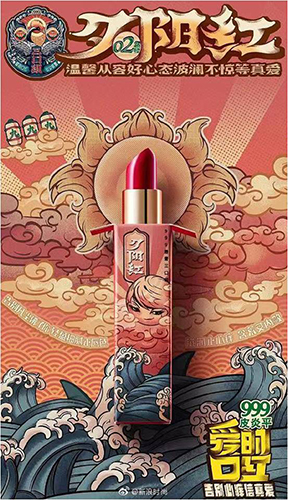 8月13日,999皮炎平推出全新口红产品,套装包含鹤顶红、夕阳红、够坦橙三款色号,组成「999恋爱止痒三口组」,并发布了一则“沙雕风”广告短片。999皮炎平构建了三种恋爱消费场景,用魔性的画风、沙雕式的动作语言,传达品牌恋爱观,搞笑之余引发女性的情感共鸣。