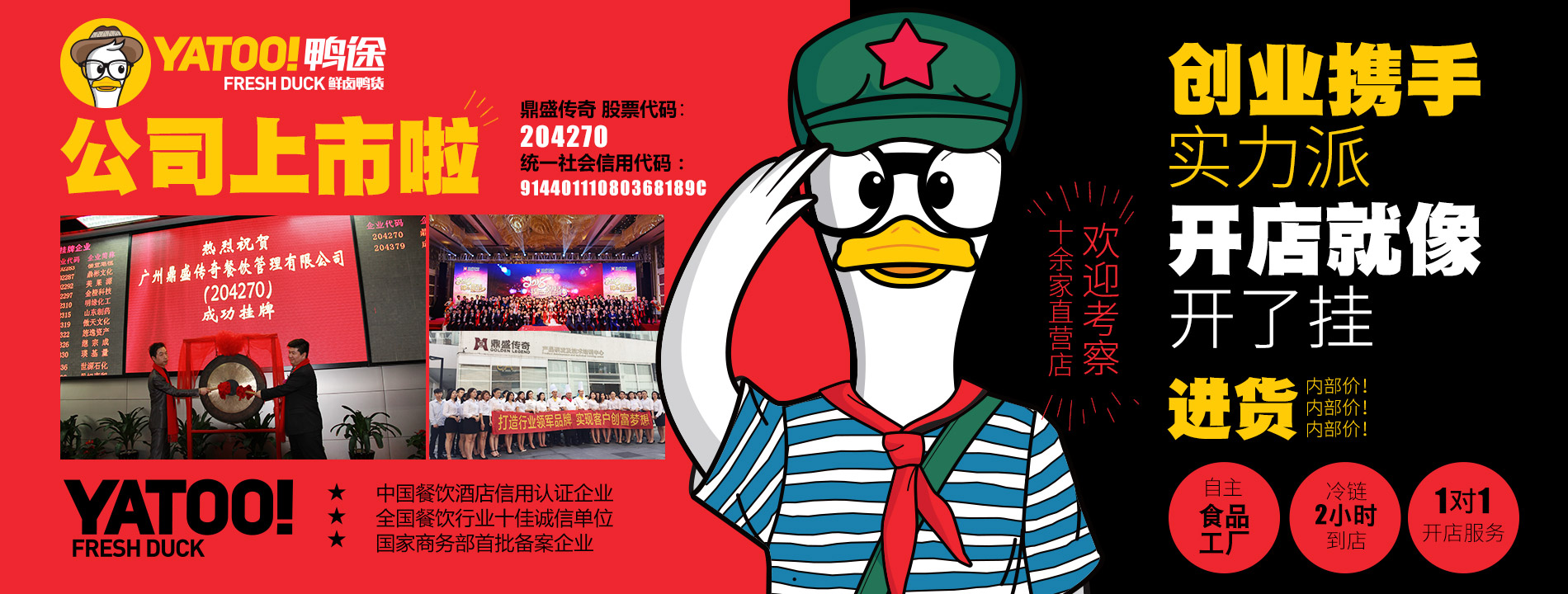 品牌背景:鸭途是一个主营鲜卤鸭货的连锁餐饮品牌,隶属于广州鼎盛传奇餐饮管理有限公司,由青岛鸭途食品科技有限公司负责运营管理。该品牌以30年秘制酱卤工艺和麻辣鲜香口感著称,提供鸭脖、鸭舌、鸭肠等特色产品,并提供全国加盟服务。